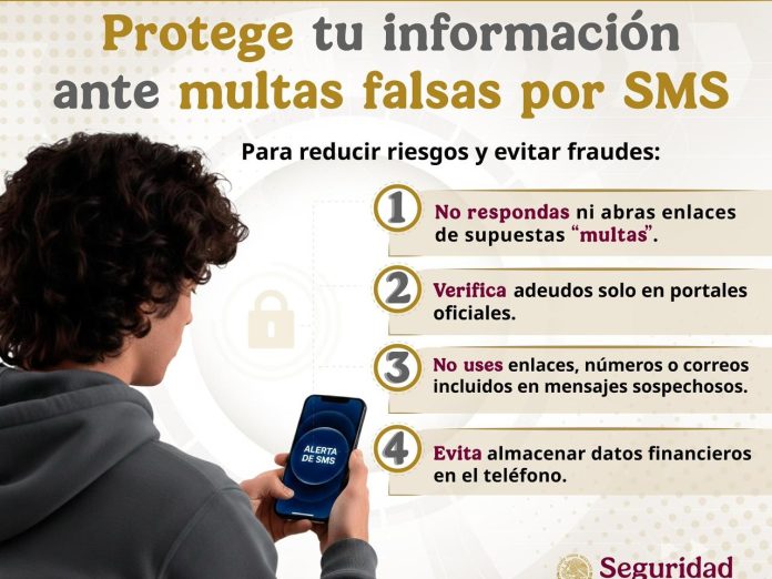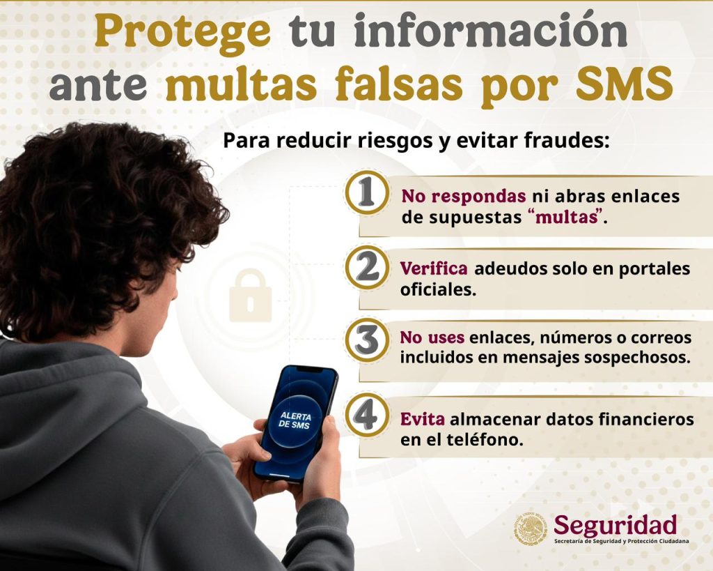 La Secretaría de Seguridad y Protección Ciudadana (SSPC), a través de la Unidad de Inteligencia, Investigación Cibernética y Operaciones Tecnológicas, emite una serie de recomendaciones para evitar que la ciudadanía sea víctima de fraudes mediante el envío de multas de tránsito apócrifas por medio de mensajes de texto SMS.