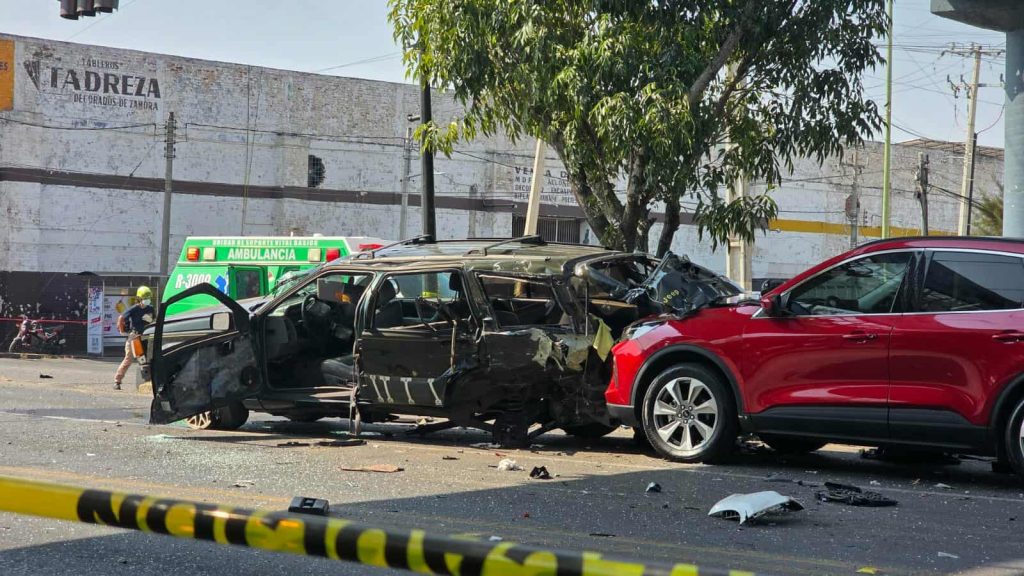 Charo/Morelia/Zamora, Mich.- Martes 25 de noviembre de 2025.- A cinco aumentó el número de muertos que dejó un aparatoso accidente vehicular registrado la mañana del pasado domingo en la cabecera municipal de Zamora. En el percance estuvieron involucrados una patrulla de la Guardia Nacional (GN), dos camionetas particulares, una motocicleta y una bicicleta.