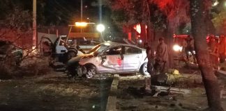 Auto vuelca y choca contra árbol en la Av. Camelinas de...