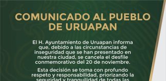 Ayuntamiento cancela desfile del 20 de noviembre en Uruapan