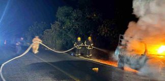 Arde camioneta en la carretera Tacámbaro-Yoricostio