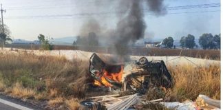 Arde camioneta tras volcar sobre la carretera Maravatío-Taranda