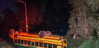 Vuelca autobús de transporte de personal en la Zitácuaro-Morelia