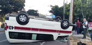 Vuelca combi en el Libramiento de Morelia