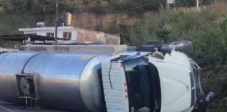 Vuelca camión pipa en la carretera Morelia-Toluca (Mil Cumbres)