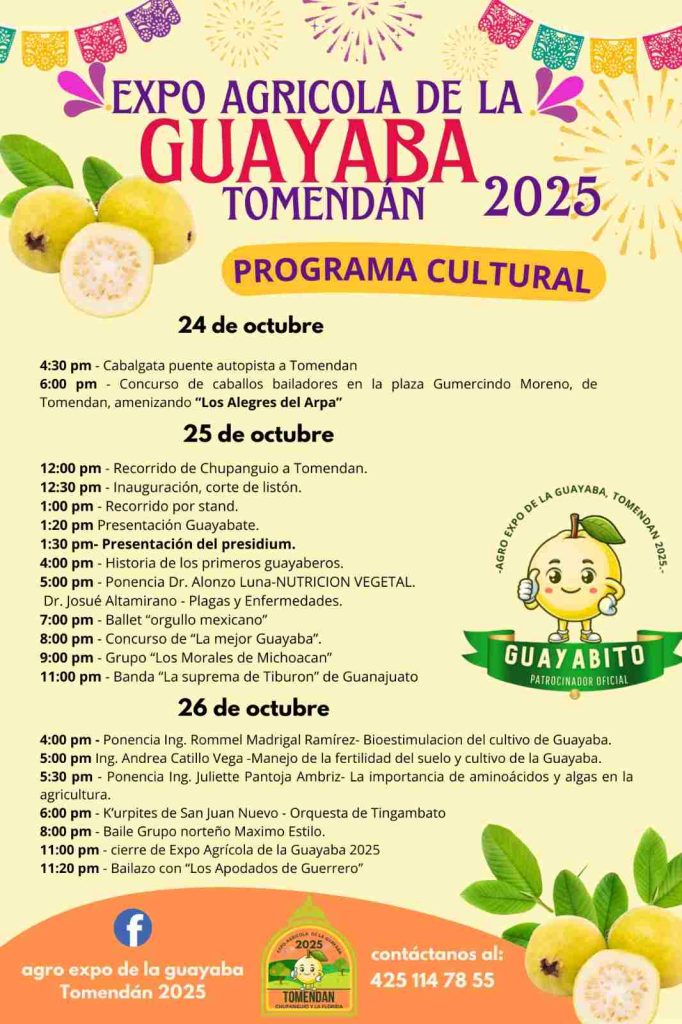 Morelia, Michoacán, 14 de octubre de 2025.- La comunidad de Tomendán, perteneciente al municipio de Taretan, está lista para la edición 2025 de su primera Expo Feria Agrícola de la Guayaba que se realizará del 24 al 26 de octubre, informó la Secretaría de Turismo de Michoacán (Sectur), dependencia dirigida por Roberto Monroy García.