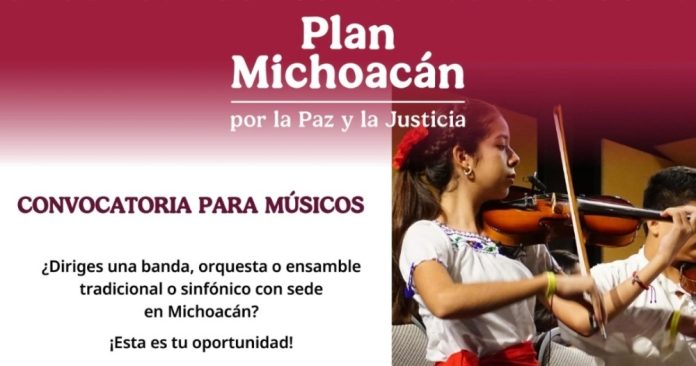 Morelia, Michoacán, 19 de febrero de 2026.- La Secretaría de Cultura de Michoacán (Secum), en coordinación con su homóloga federal, lanzó la convocatoria del Programa de Apoyo y Fortalecimiento para las Agrupaciones Musicales Comunitarias de Michoacán.Dicha iniciativa es impulsada por el Sistema Nacional de Fomento Musical como parte del Plan Michoacán por la Paz y la Justicia.