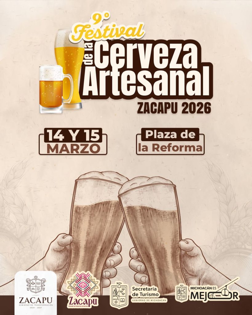 Morelia, Michoacán, 6 de marzo de 2026.- El Festival de la Cerveza Artesanal de Zacapu difundirá la cultura líquida del estado los días 14 y 15 de marzo, informó el titular de la Secretaría de Turismo de Michoacán (Sectur), Roberto Monroy García.