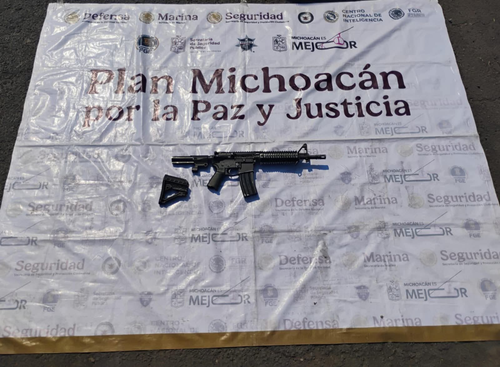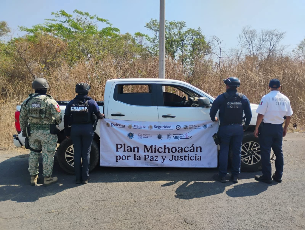 Apatzingán, Mich.- 24 abril de 2026.- Derivado de una serie de enfrentamientos entre civiles armados y elementos de la Base de Operaciones Institucionales, autoridades lograron el aseguramiento de dos vehículos con reporte de robo, un arma larga y la detención de un hombre, en la población de Puertecitos, municipio de Apatzingán.