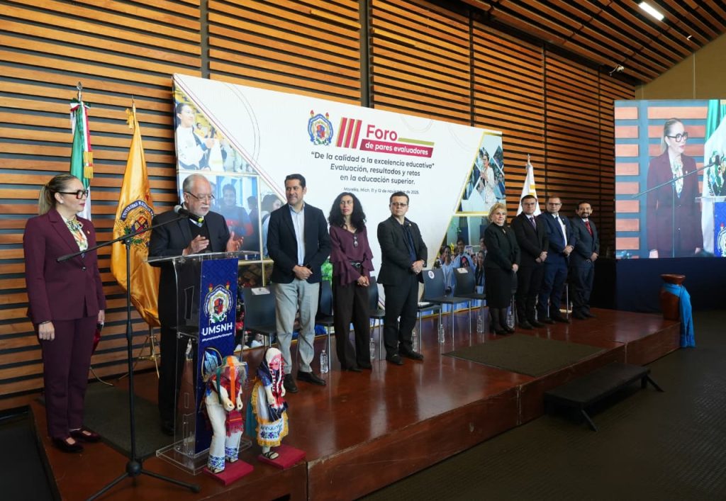 Morelia, Michoacán, a 11 de noviembre de 2025.- La Universidad Michoacana de San Nicolás de Hidalgo (UMSNH) vive una consolidación histórica en su calidad educativa y refrenda el firme compromiso con la evaluación y la mejora continua, lo anterior quedó de manifiesto durante la inauguración del III Foro de Pares Evaluadores “De la calidad a la excelencia educativa”, que estuvo presidido por la rectora Yarabí Ávila González.
