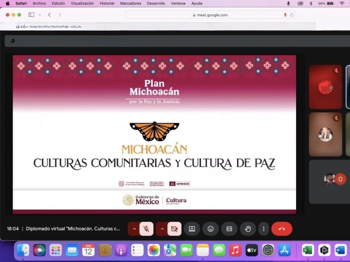 Morelia, Michoacán, a 13 de marzo de 2026.- Con una amplia participación arrancó el Diplomado “Michoacán. Culturas comunitarias y cultura de paz”, acción que forma parte del convenio de colaboración signado entre la rectora de la Universidad Michoacana de San Nicolás de Hidalgo (UMSNH), Yarabí Ávila González y la secretaria de Cultura del Gobierno de México, Claudia Curiel de Icaza.