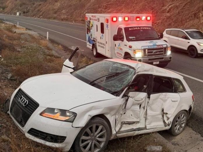 Al arribar al sitio, los socorristas localizaron un vehículo Audi A3, color blanco, con placas PTL-773-B, el cual se encontraba fuera de la cinta asfáltica y sin ocupantes, por lo que se presume que fue abandonado tras el percance.