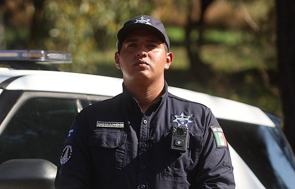 El mandatario explicó que las cámaras de solapa que traen consigo los agentes de la Guardia Civil, graban en tiempo real la atención que brindan a la ciudadanía, servicio que se refuerza al estar conectadas con el centro de vigilancia C5i.