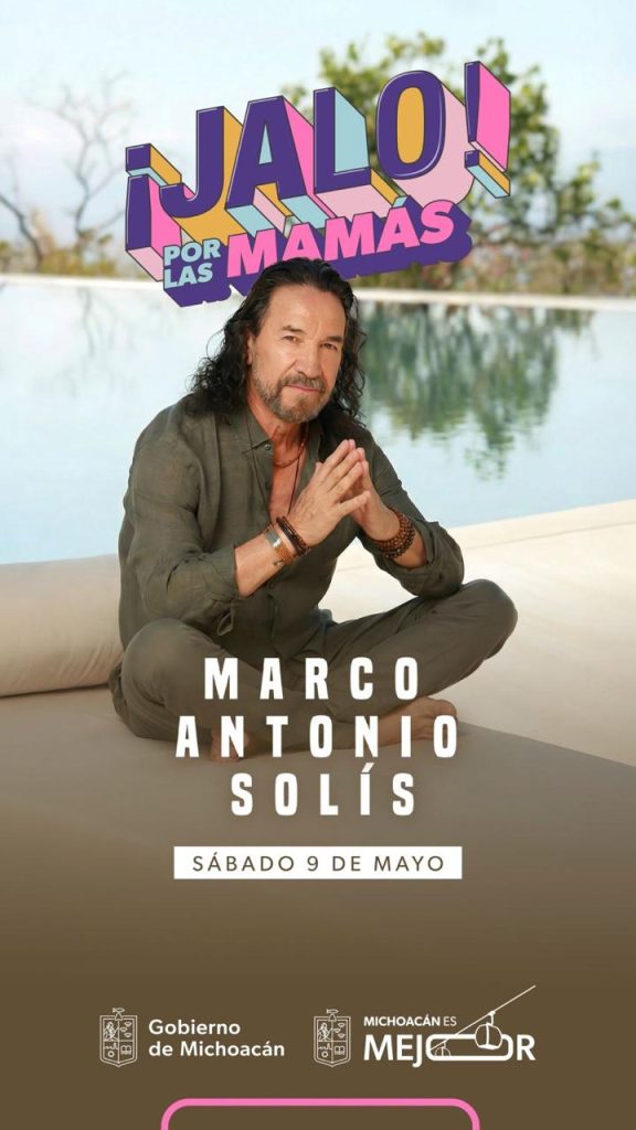 Morelia, Michoacán, 15 de abril de 2026.- El gobernador Alfredo Ramírez Bedolla anunció el regreso de Marco Antonio Solís a la ciudad de Morelia para cantarle a todas las mamás michoacanas el próximo 9 de mayo, como parte del Festival Jalo 2026.