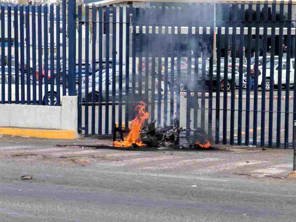Los manifestantes también bloquearon con varios vehículos el Periférico Paseo de la República, a la altura de la citada institución, ubicada en la colonia Sentimientos de la Nación.