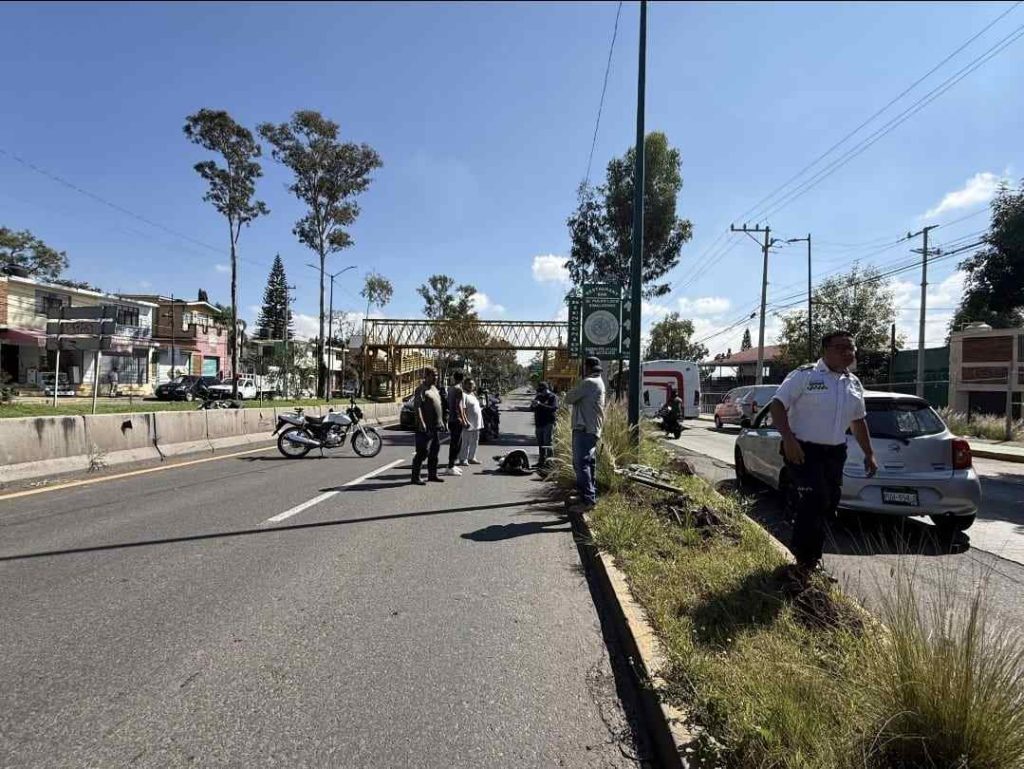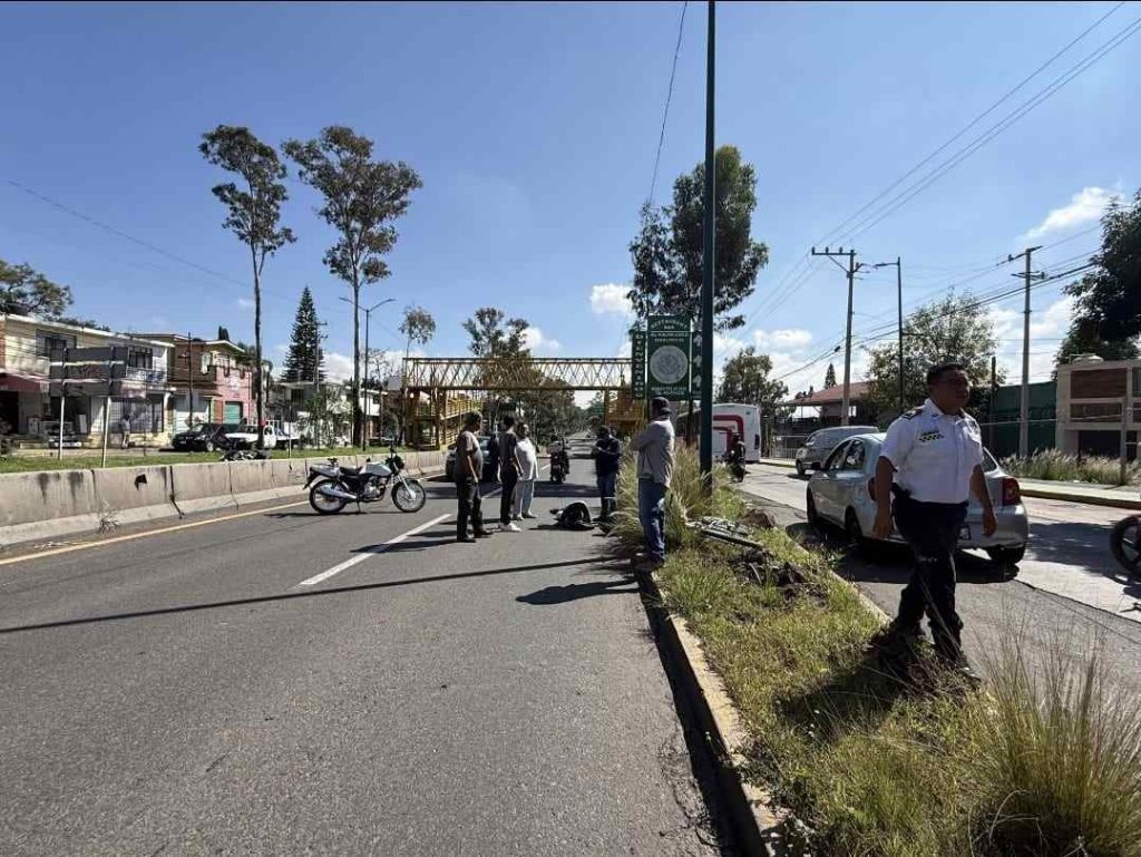 En la escena, un motociclista y un auto protagonizaron un choque. El motorista resultó lesionado, él fue auxiliado por paramédicos y canalizado a un hospital para su correcta valoración médica. Unos oficiales efectuaron las acciones conducentes del asunto.