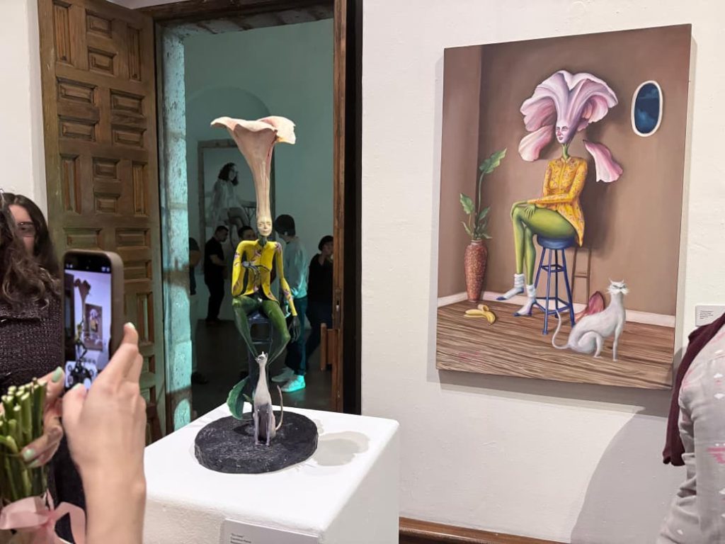 La exposición reúne dieciséis pinturas, nueve esculturas y un mural de gran formato creado especialmente para el recinto. En esta muestra, Pavia despliega un imaginario neosurrealista poblado por mujeres-flor, habitaciones que respiran, universos fantásticos y paisajes que se debaten entre la quietud y la catarsis.