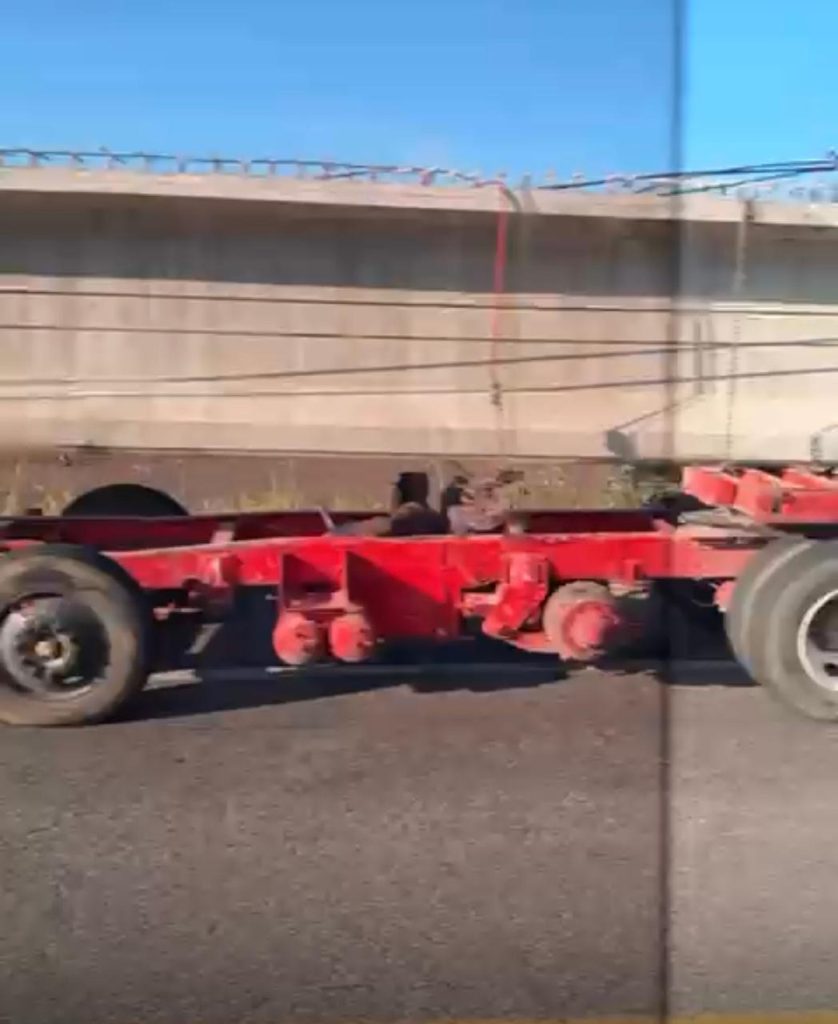 Al lugar se trasladaron paramédicos de Ambulancias AMBUMED, quienes a su llegada encontraron el tractocamión con una cabina de color blanco y remolque con la enorme barra de concreto en un desnivel por fuera de la carpeta asfáltica.