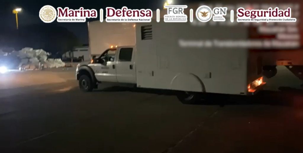 La operación se realizó en el interior del Recinto Portuario de Mazatlán, cuando elementos de la Unidad Naval de Protección Portuaria, durante la inspección a un tractocamión, detuvieron a su conductor, aseguraron 339 cajas que contenían sustancias con características similares a la metanfetamina, con un peso aproximado de 605 kilos y 21 paquetes con posible cocaína, fentanilo y otras sustancias, con un peso estimado de 21 kilos, los cuales venían ocultos en un doble fondo de la unidad de carga.