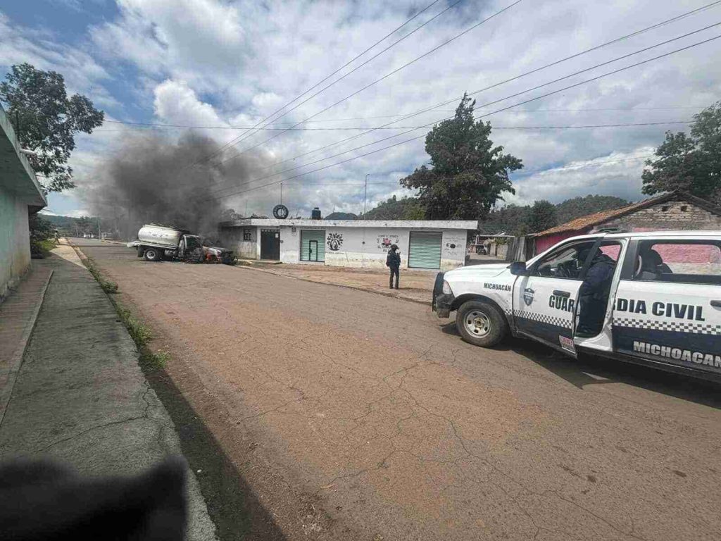 Erongarícuaro, Mich.- Domingo 28 de septiembre de 2025.- Integrantes de un grupo criminal realizaron bloqueos y quemas de vehículos en diferentes puntos de la carretera Erongarícuaro-Pátzcuaro, hecho que perjudicó el libre tránsito y generó temor en los habitantes de la zona, informaron fuentes allegadas al tema.