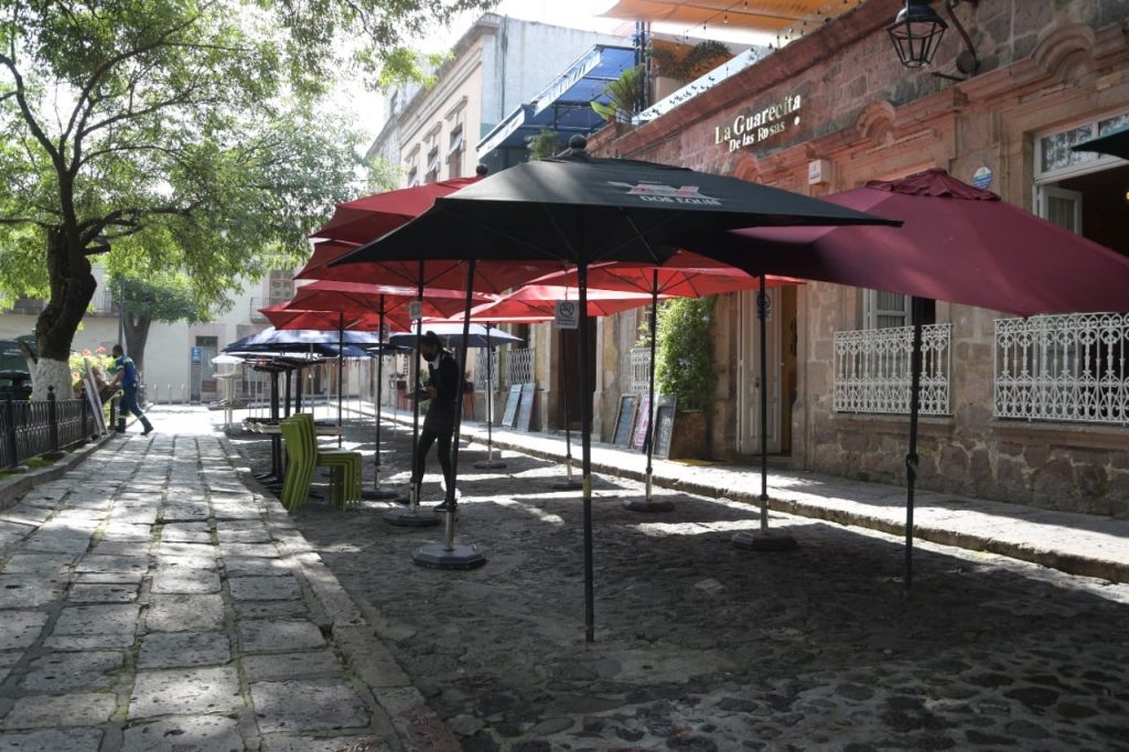 Imágenes de la plaza de Las Rosas en Morelia, Michoacán, México, con la actividad restaurantera y hotelera paralizada por las afectaciones del COVID-19 (Fotografías Víctor Americano)