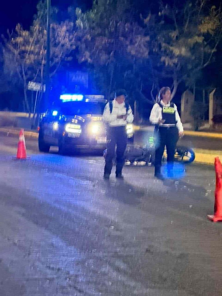 Morelia, Mich.- Domingo 01 de marzo de 2026.- Un motociclista perdió la vida en un accidente de tránsito registrado la noche de este domingo sobre la avenida Juan Pablo II, en la zona sur de la ciudad de Morelia, informaron fuentes policiales y de rescate.