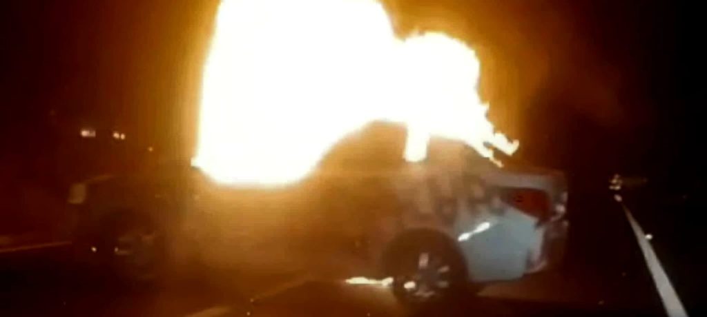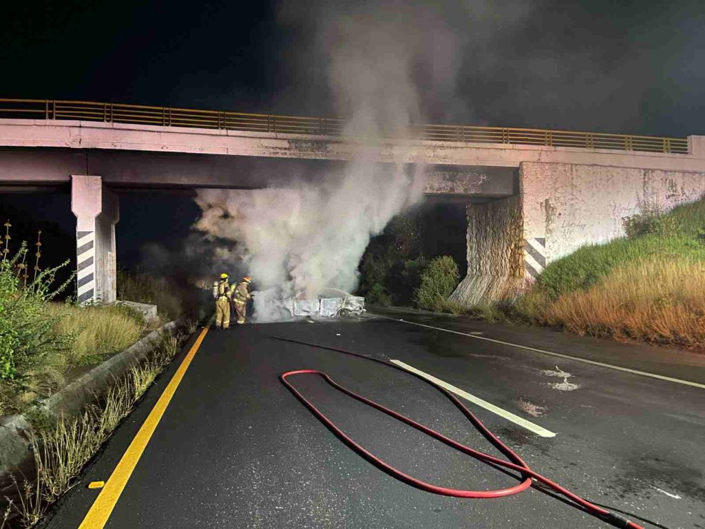 Morelia, Mich.- Martes 04 de noviembre de 2025.- Un grupo de estudiantes normalistas atravesó un vehículo y le prendió fuego sobre la carretera Morelia-Pátzcuaro, a la altura de la Tenencia de Tiripetío, municipio de Morelia, informaron autoridades policiales.