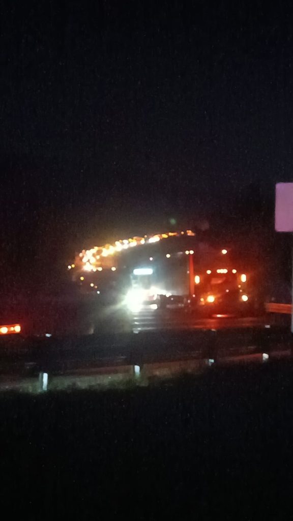 Copándaro/Tarímbaro, Mich.- Miércoles 28 de enero de 2026.- Un tractocamión, con exceso de dimensiones debido a que transportaba la estructura de un puente, quedó atorado en una rampa curva ubicada en el entronque de la autopista México-Guadalajara/Morelia-Salamanca, trascendió en redes sociales.