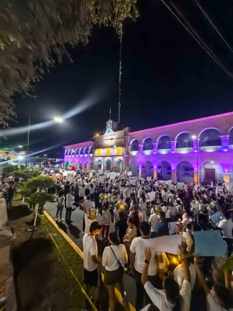 Apatzingán, Mich.- 03 de noviembre de 2025.- La noche de este lunes, cientos de pobladores de Apatzingán, portando en su mayoría playeras blancas, salieron a manifestarse en las calles aledañas a la zona centro de la ciudad, para exigir justicia por el homicidio del alcalde de Uruapan Carlos Manzo y la detención de los asesinos del líder limonero Bernardo Bravo. Protesta que terminó en violencia, el Palacio Municipal fue destrozado por la enardecida turba.