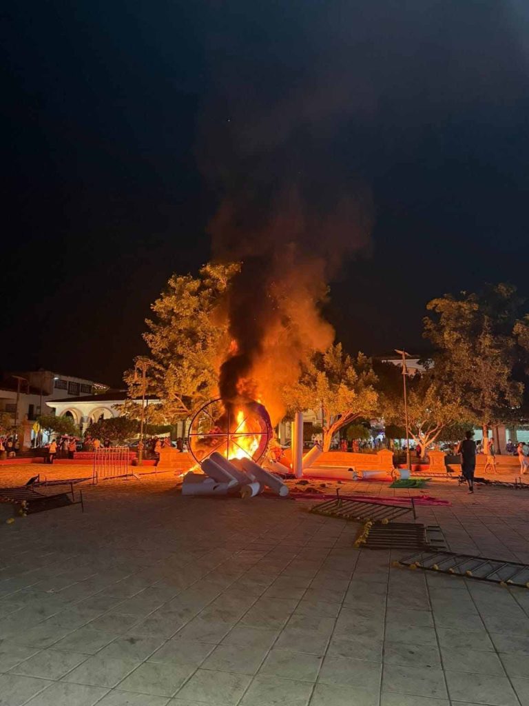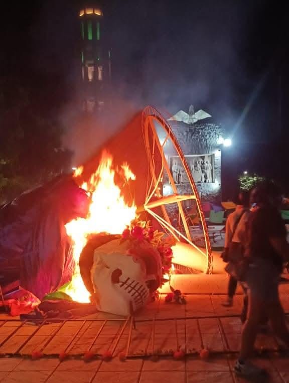 La Plaza Constituyentes, un espacio de convivencia, también fue blanco de la furia ciudadana, con actos de vandalismo, destrozos e incendios en lo que momentos horas eran ofrendas por el día de muertos.