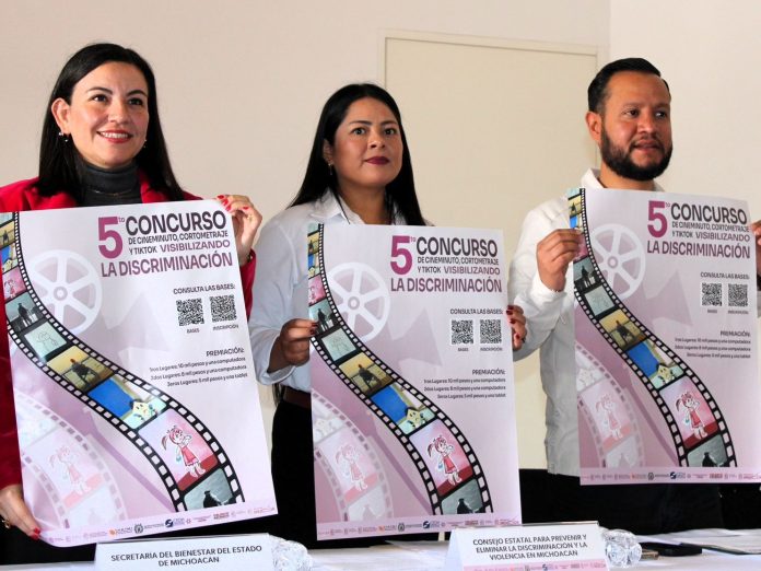 Morelia, Michoacán, 5 de febrero de 2026.- La Secretaría de Gobierno, a través del Consejo Estatal para Prevenir y Eliminar la Discriminación y la Violencia (Coepredv), en conjunto con nueve instituciones públicas, lanzaron la convocatoria para la quinta edición del Concurso de Cineminuto, Cortometraje y TikTok “Visibilizando la Discriminación”.