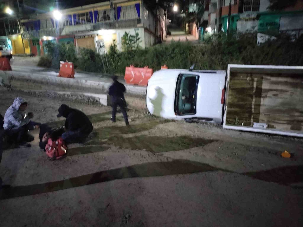 Zitácuaro, Mich.- Domingo 09 de noviembre de 2025.- Dos jóvenes resultaron lesionados tras la volcadura de una camioneta sobre el Libramiento Francisco J. Mujica de la ciudad de Zitácuaro, informaron autoridades policiales y de rescate.