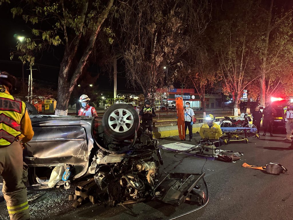 Morelia, Mich.- 18 de abril de 2026.-Durante la madrugada de este sábado, se registró un aparatoso accidente vehicular sobre Libramiento Norte de la ciudad de Morelia con saldo de un masculino lesionado y cuantiosos daños materiales.