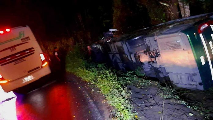 El aparatoso accidente se registró durante la madrugada de este jueves a la altura del sitio conocido “Chorrito de Agua”. La mencionada unidad pertenece a la línea Elite, en ella viajaban 24 usuarios, de los cuales la mitad resultó lastimada y la restante ilesa.