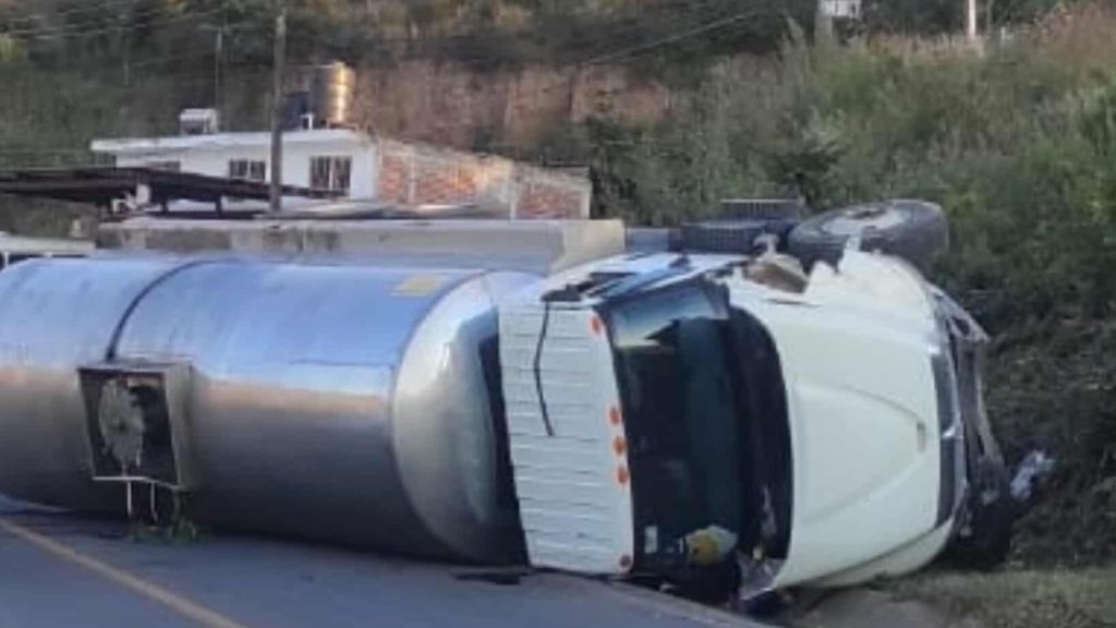 Charo, Mich.- Jueves 06 de noviembre de 2025. – Un camión pipa volcó sobre la carretera Morelia-Toluca, también conocida como camino a Mil Cumbres, dentro del municipio de Charo, en los límites con la capital michoacana, informaron fuentes allegadas al tema.