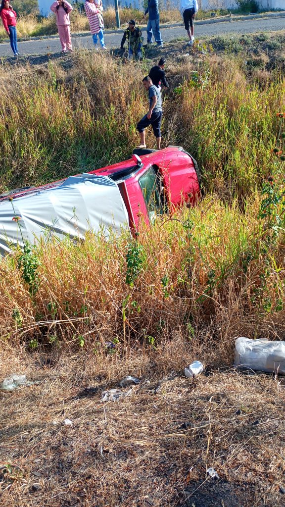 Morelia, Mich.- Sábado 27 de diciembre de 2025.- Durante la mañana de este sábado una camioneta volcó tras caer a un desnivel ubicado a la orilla de la avenida Miguel Hidalgo y Costilla, en la zona norte de la ciudad de Morelia.